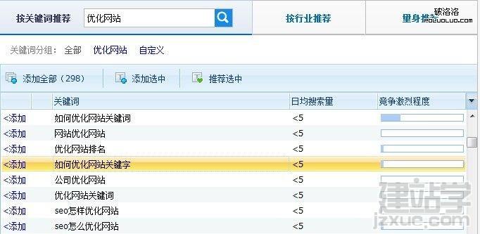 推廣助手本來是幫競價用戶來推薦關鍵詞的,只要你輸入一個關鍵詞,馬上就會出來很多以這個關鍵詞為核心詞的關鍵詞,其中就有大量的長尾關鍵詞,而且都沒還帶有流量搜索數據以及競爭激烈程度圖,這個更有利于我們得到精確的數據,可以選擇一些大流量的長尾詞而競爭小的來做。